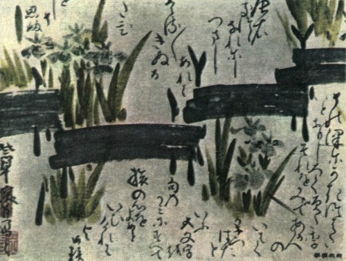 Сквозь прорези в маске Глаза актера смотрят туда, Где лотос благоухает. 1839