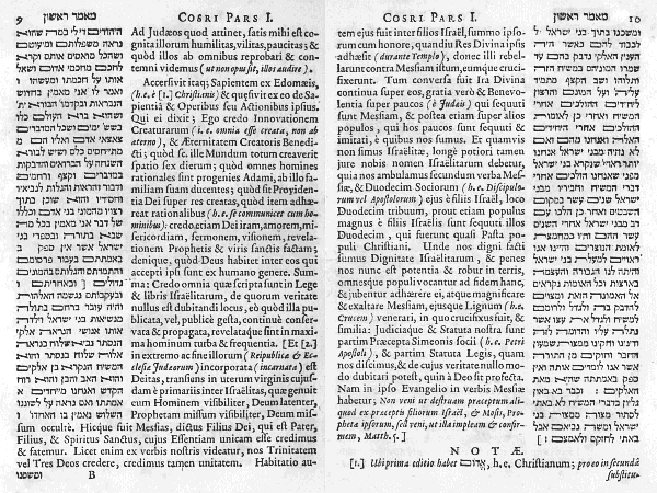 Наконец, нужно обратить внимание еще на два обстоятельства. Во-первых, мы не знаем всего, что содержалось в потерянных «Хазарских проповедях» Константина Солунского (Кирилла), и не знаем, что из этого воспроизведено в тексте Халеви. Значит, можно предположить, что такого материала имеется больше, чем я здесь привел. Второе: целостность текста Халеви, именно в той его части, которая относится к христианскому участнику полемики, серьезно нарушена. Эта часть не сохранилась в арабском источнике, она имеется только в появившемся позже еврейском переводе, в то время как напечатанные издания Халеви, особенно те, которые относятся к XVI веку, подвергались, как известно, цензуре христианской Церкви.