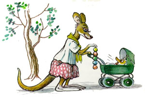Каждый раз, когда наступал вечер, мама кенгуренка Авоськи вздыхала. Почему она вздыхала? Потому что надо было снова укладывать в постель своего сынишку и укачивать, укачивать, укачивать...