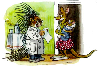 Пригласила мама доктора — дикобраза Христофора. Узнал доктор, в чем дело, и покачал головой: