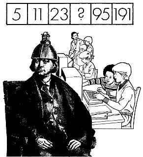 Достопочтенный профессор Варвик Барнстейбл, всемирно известный изобретатель «мыслешлема», вынужден был ответить на вызов, брошенный ему этими самодовольными юнцами из компьютерного класса Мейплвудской средней школы. Профессор водрузил себе на голову шлем в надежде справиться с задачкой быстрее, чем это сделает ватага маленьких гениев за его спиной. Удастся ли ему отгадать, каким должно быть четвертое число в ряду нарисованных выше чисел?