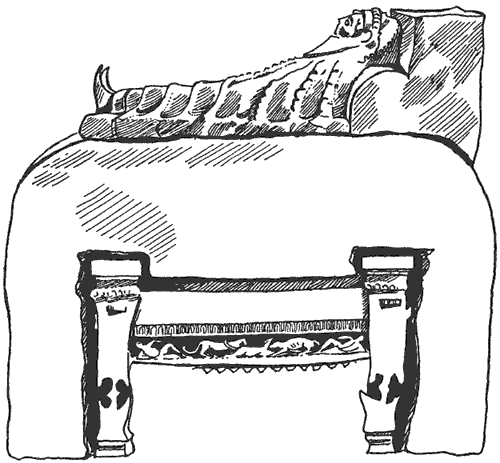 Вследствие недолговечности использовавшихся материалов до нас дошло очень немного остатков древних этрусских храмов. Хотя подиум и фундаменты строились из камня, сами здания из дерева и кирпича давно исчезли. Все, что оставалось в самом лучшем случае, – основания стен, по которым можно восстановить план храма. При раскопках обнаружено множество декоративных терракотовых элементов, покрывавших и украшавших деревянные части антаблемента и фасада. Концы балок маскировались антефиксами (фото 42, 47); верхнюю часть здания со всех сторон опоясывали фигурные фризы. Иногда, как в большом храме в Вейях, на крыше стояли статуи в натуральную величину, выделяясь на фоне неба. В храмах эллинистической эпохи на фронтонах устанавливали рельефные скульптурные группы, изображавшие сцены из греческой мифологии.