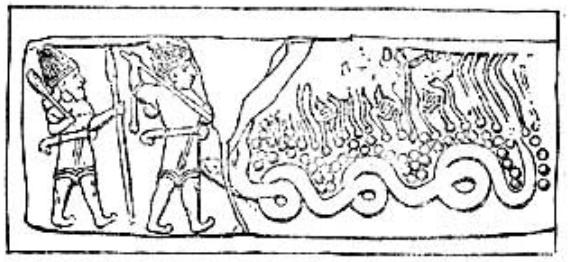 Тогда поспешно прибыл Телепину. Были гром и молния. Внизу темная земля была в смятении. Камрусепа увидела его. Крылья орла принесли его издалека Она смирила его гнев, она смирила его бешенство, она смирила его ярость, она смирила его неистовство.