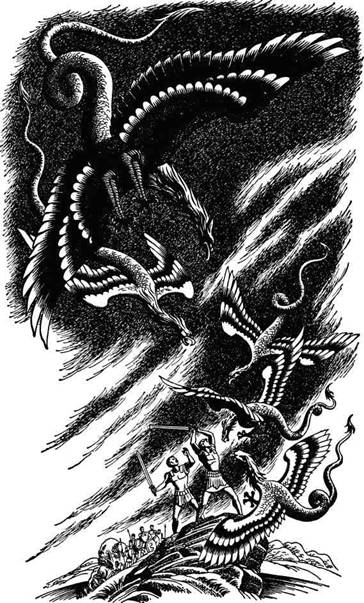 Их следующим приключением была встреча с гарпиями, ужасными крылатыми чудовищами с огромными загнутыми клювами и когтями, которые к тому же всегда оставляли за собой жуткий, непереносимый запах. В том месте, куда причалили для ночевки аргонавты, жил одинокий несчастный старик по имени Финей, которого Аполлон наделил даром пророчества. Он безошибочно предсказывал будущее, чем вызвал неудовольствие Зевса, который всегда окутывал покровом тайны те поступки, которые намеревался совершить, поступая, по мнению тех, кто знал Геру, очень разумно. Это и навлекло на старика страшное наказание. Как только он собирался сесть за трапезу, к нему тотчас слетались гарпии, эти «зевсовы псы», осквернявшие его пищу и оставлявшие ее пахнущей настолько дурно, что никто не мог и приблизиться к ней, а не то что есть. Когда аргонавты увидели бедного старика, он напоминал скелет. Он еле перебирался на своих высохших ногах, дрожал от слабости, и его кости, казалось, удерживала только висевшая на них кожа. Финей радостно приветствовал героев и просил их помочь ему. Благодаря своему дару пророчества он знал, что защитить его от гарпий могут только два человека, которые как раз находились среди аргонавтов. Это были сыновья Борея, северного ветра. Аргонавты с состраданием выслушали его, и сыновья Борея с большой охотой согласились ему помочь.