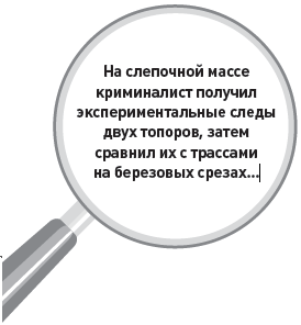 На слепочной массе криминалист получил экспериментальные следы двух топоров, затем сравнил их с трассами на березовых срезах…