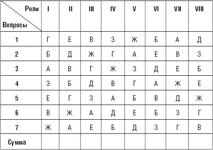 Расписав все ответы, нужно вычислить сумму баллов в каждом из столбцов.