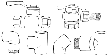 На рисунках 41, 42, 43 показаны основные, наиболее распространенные виды котлов, водонагревателей, насосов и арматуры.