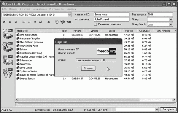 ? Способность чтения информации о компакт-диске из базы данных Интернета (CDDB или FreeDB) и сохранения ее на жестком диске для дальнейшего использования. Это позволяет в процессе копирования дорожек на звуковой диск автоматически давать им имена, соответствующие названию и номерам композиций, а также запоминать эту информацию в тэге будущего MP3-файла. Если же Интернет у вас отсутствует, можно заполнить «базу данных» и вручную – через специальный редактор этого же граббера.