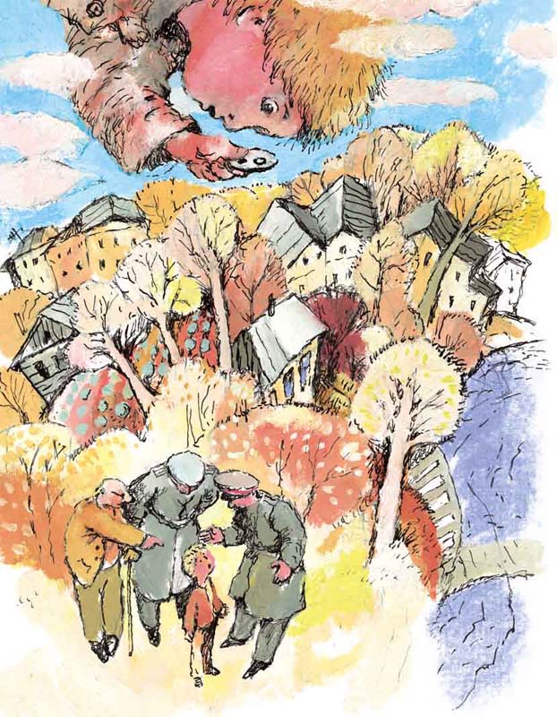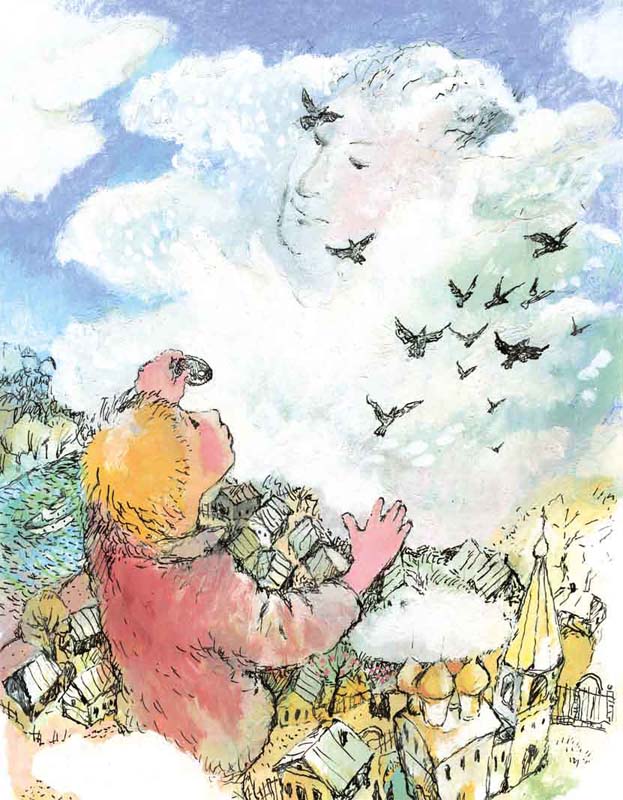 Ему ужасно захотелось снова стать великаном. И он опять ходил, перешагивая через высоковольтные линии, через трубы заводов, через сосны и кедры. Он снова отгонял птичьи стаи, чтобы они не попали в двигатели самолётов. Он заглядывал в клокочущие вулканы и отводил от селений потоки горных лавин.