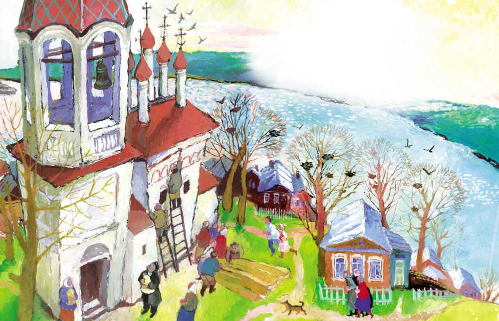Когда папа закончил рассказ, Настя и Никита обернулись в сторону церкви, чтобы ещё раз посмотреть на колокольню…