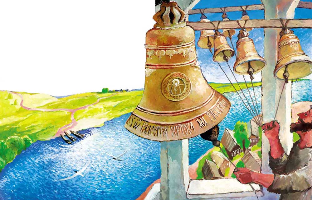 Не было рядом колокола-отца и колокола-матери. Но вместо отца звон начал его старший сын, и над волжскими просторами понеслось: «Бом-бом!» И вот уже его сестра начала ему вторить: «Бем-бем!» (она старалась свой звук сделать как можно насыщеннее, и выходило почти по-матерински: «Бам-бам!»). Вскоре в общий семейный хор радостно и звонко ворвался голос Бим-бима. И на всем этом фоне голосов старших братьев и сестёр залились мелодичным перезвоном повзрослевшие малыши: «Динь-дилинь, динь-дилинь, динь-дилинь!»