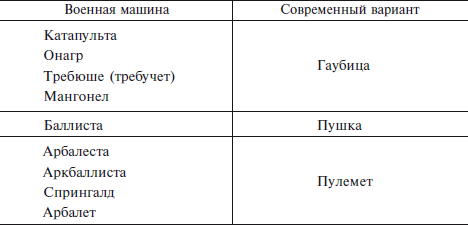 Чтобы описать условия, в которых велась осада прошлого, следует принять во внимание и положение осажденного, и возможности осаждающего. Конечно, окруженные стенами города существовали и до появления военных машин, но последние, несомненно, ускорили строительство укрепленных крепостей. Машины, которые были известны под собирательными названиями balistariae и petrariae, изначально делились на два типа и являются близкими «родственниками» своих современных преемников – гаубицы и пушки. Баллиста и катапульта играли свои, строго определенные роли в симфонии обстрела. Баллиста просуществовала до самого конца периода Средневековья, а катапульта, по причине своего конструктивного несовершенства, была постепенно вытеснена требучетом, изобретение которого приписывают французам. Было и третье механическое оружие, появившееся позднее, названное арбалеста, или арбалет, он же самострел. Это оружие было описано в главе 1. Авторы, у которых мы черпаем наши знания об этих машинах, зачастую грешат неопределенностью и используют весьма свободные термины при описании предметов или событий, которые они лично не имели возможности видеть. Многие из этих писателей опирались на труды древних историков, и в итоге до нас дошла довольно путаная терминология, касающаяся военных машин древности, которая не имеет тесной связи (если имеет ее вообще) с их функционированием.