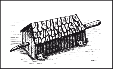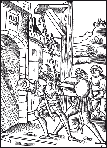 Бурав был намного меньше, чем таран. Он тоже имел укрепленный конец. Его роль заключалась в проделывании отверстий в основании стен – чтобы разрушить фундамент. Когда удавалось проникнуть вглубь достаточно далеко, отверстие расширялось, внутри устанавливались деревянные крепи, которые поджигали, и стена или башня рушилась.