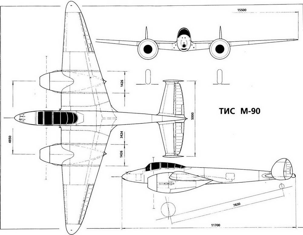 «Модернизация самолета „ТИС“, спроектированного и построенного в 1940–41 г.г., но не окончившего до сих пор летных и даже заводских испытаний в следствии неудовлетворительной работы моторов АМ-37. В этом занятии нами затрачено около трех лет. Безуспешность работы с АМ-37 и отказ от доводки их конструктором Микулиным А. А. и мы решили поставить на „ТИС“ моторы М-39, работающие лучше, а в связи с этим мы одновременно и модернизируем самолет как в смысле аэродинамики, как и в боевом отношении. В аэродинамическом отношении облагорожены моторные гондолы, уменьшен их мидель, а водорадиаторы перенесены в консоли. В боевом отношении калибр переднего оружия увеличен: вместо четырех ШКАС, двух БС, двух ШВАК нами устанавливаются две ШВАК, две пушки Н-45 (имелись ввиду НС-45 — авт.). Задняя установка со ШКАСа переведена на БС. Назначение самолета — ведение воздушного боя с легкими и тяжелыми истребителями и бомбардировщиками, охрана и сопровождение бомбардировщиков на дальние расстояния, борьба с танками, моторизованными соединениями, а также поддержка атак войск. Самолет может использоваться как ночной истребитель. В перегрузочном варианте самолет имеет возможность выполнять задачи ближнего пикирующего бомбардировщика».