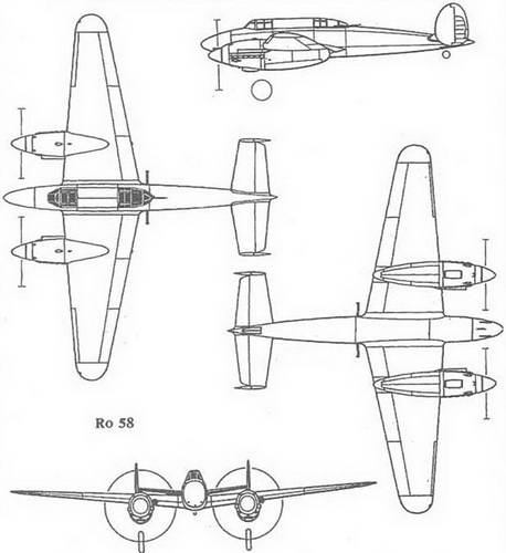 Ro.58 был цельнометаллическим монопланом с нижним расположением крыла и двухкилевым оперением. Вооружение состояло из пяти стрелявших вперед пушек Маузер MG 151 (две из них находились в подфюзеляжном контейнере, который можно было снять и заменить пилоном бомбовой подвески) и одного оборонительного 12,7-мм пулемета «Бреда-SAFAT» в задней кабине. Пустой вес равнялся 4359 кг, взлетный 6113 кг.