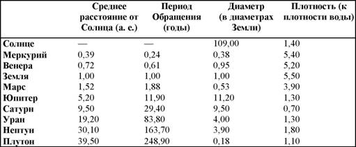 Солнечная система состоит из Солнца, планет, их спутников, астероидов и комет. Некоторые физические свойства планет приведены в таблице внизу; Солнце включено в таблицу для сравнения.