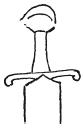 На мече графа Дитмара яблоко совершенно не похоже на бразильский орех; но я думаю, что это тем не менее логическое развитие полукруглого типа с прямой верхней гранью. Оно стало более массивным и высоким, почти U-образным, с вертикальным ребром (рис. 63).