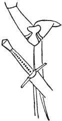 Тип Т5. Грушевидный вариант, который использовался позже, чем все уже упомянутые. Этот тип чаще всего встречается на мечах, которые нельзя датировать раньше 1500 года, – таких, как два меча из коллекции Уоллиса в Лондоне (№ А504 и А698), хотя его можно найти на английских скульптурах (например, на изображении сэра Джона Пейрента) уже в 1420 году (рис. 81, 82).