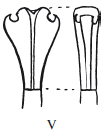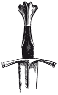 Тип V. Очень своеобразная форма, обычно довольно метко сравниваемая с рыбьим хвостом. Можно привести лишь несколько примеров, но все они установлены на очень хороших мечах. Самый лучший, по моему мнению, находится в коллекции Уоллиса в Лондоне.