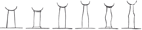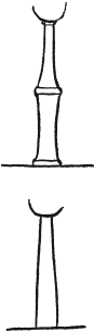 С появлением мечей группы 2 после 1350 года появились новые формы рукоятей, хотя и старые не вышли из употребления. Наиболее характерным представляется стиль, в основном встречающийся на мечах с длинными рукоятями. Хотя, по имеющимся в настоящее время свидетельствам, эта форма появилась около 1370 года, она распространилась только в 1420 году, а пик ее популярности пришелся на 1450–1570 годы. Форму этой рукояти описать довольно трудно ввиду ее двойственности. Она разделена примерно пополам поперечным ребром. Под ним рукоять имеет плоское овальное сечение, слегка Сужается к крестовине, стороны чуть вогнуты. Над серединным ребром сечение рукояти более округлое (хотя может быть и шестигранное), она резко сужается, как горлышко бутылки, к яблоку (см. рис. 112, 113). Если рукоять меча была короткой, существовало три основных разновидности. Первая – это незабвенная овальная рукоятка (в сечении – овал), восходящая еще к временам древних кельтов. Она имела небольшую выпуклость в середине, после чего сужалась к яблоку. Вторая – рукоять почти круглого сечения, сильно выпуклая в середине (рис. 75, 76). Третья разновидность была характерна на протяжении короткого периода и потому не представляет большого интереса. Она имеет форму бутылки и может считаться адаптацией рукояти с поперечным ребром для меча с коротким хвостовиком. Ее первое появление в произведениях искусства (в основном на английских монументальных изображениях) (рис. 81, 82, 115, 116) датировано примерно 1390 годом, до 1430 года она встречается довольно часто (рис. 82), а потом исчезает вообще.
