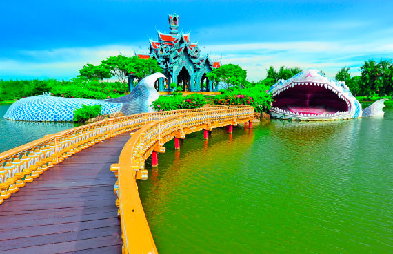 Добро пожаловать на обширную территорию «Города древностей»! Настоящий рай для любопытных, желающих увидеть все крупные тайские достопримечательности в одном месте, считается крупнейшим в мире музеем под открытым небом. Копии знаменитых храмов и дворцов выполнены с безукоризненной точностью, и на полный их осмотр может уйти не один день. Возьмите напрокат машинку для гольфа и прокатитесь среди прудов, пальм и великолепных реплик творений прошлого.