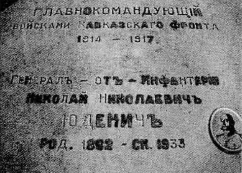 Плита «семейного» склепа H. H. Юденича на кладбище Кокад в Ницце