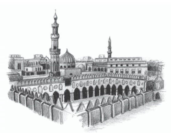 Фатимиды пожелали, чтобы в центре их новой столицы находилась мечеть, как в Фустате Амра и в аль-Катаи Ибн Тулуна. Мечеть аль-Азхар («блистательная») была заложена в 970 году, на следующий год после покорения Египта. Подобно многим другим мечетям, она была призвана сочетать в себе религиозную и образовательную функции, и сегодня университет аль-Азхар претендует на статус старейшего учебного заведения в мире (этот статус оспаривает марокканский университет в Фесе). Первоначально здесь изучали исламское право и вероисповедание, а процесс обучения по большей части представлял собой механическое запоминание наставлений шейха, которого слушали, сидя на полу. Завершив обучение, студенты сами становились наставниками и передавали свои знания другим. Со временем к преподаваемым в университете дисциплинам добавились медицина, астрономия и математика, а сегодня университет (чей главный кампус находится в пригороде Каира) предлагает широкий диапазон дисциплин для изучения. Мечеть же служит наглядным напоминанием о том, что в основе исламской традиции лежит образование. (Недаром при многих мечетях существуют религиозные школы — медресе, равно как и школы изучения Корана — сабил-киттаб. Сам Пророк учил, что в жизни есть две основных «милости» — вода для жаждущих и знание для невежественных, и мечеть аль-Азхар оказывает вторую из этих милостей на протяжении одиннадцати столетий).