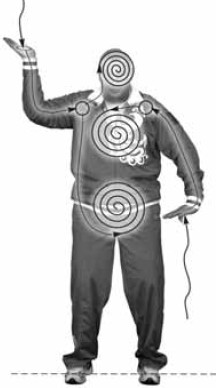К Истоку Силу ведем по внутреннему краю рук к подмышечным впадинам, далее по боковым поверхностям ребер к «лампасным» линиям ног и стопам, которые лучи Силы пересекают поперек. Далее поднимаем Силу по внутренним поверхностям ног к Истоку, где правый и левый потоки сливаются. Единый поток Силы устремляется по центральному каналу вверх к Яру.