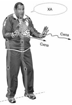 Принимаем стойку «Кучер». Стараемся, чтобы тело не было статично, а слегка «перетекало», «волнилось». Делаем вдох Режей. Наполнившись Силой, на выдохе выкрикиваем сакральный звук «ХА» и выбрасываем полусогнутые руки ладонями вперед. Есть одно важное условие: выдохнуть надо не полностью, а примерно наполовину.