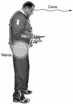 Займите позицию «Кучер». Тело расслаблено. Мысленно разделите тело фронтальной плоскостью пополам. Правая рука перед туловищем, пальцы кисти смотрят вниз, ладонь повернута внутрь, лежит на Зароде. Левая рука находится сзади туловища. Левая кисть на уровне Зарода, расположена пальцами вниз, ладонью внутрь. Делаем медленный вдох, лучше Режей. Сила входит в центры правой и левой ладоней (Ладояры).