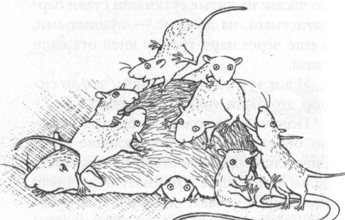 В три недели я выгнала крысят в общую клетку. Весте стало полегче — хоть есть где спрятаться, зато старшие тетки взвыли. До пяти недель крысята считаются «неприкасаемыми», и даже вожак позволяет им делать что угодно. Чем паршивцы и паршивицы бессовестно пользовались, пытаясь добыть из Паськи молоко или хотя бы клочок шерсти. Бедный пасюк то и дело висел на потолке, считая оставшиеся до пяти недель часы, а юная поросль радостно скакала снизу, как стая голодных пираний.