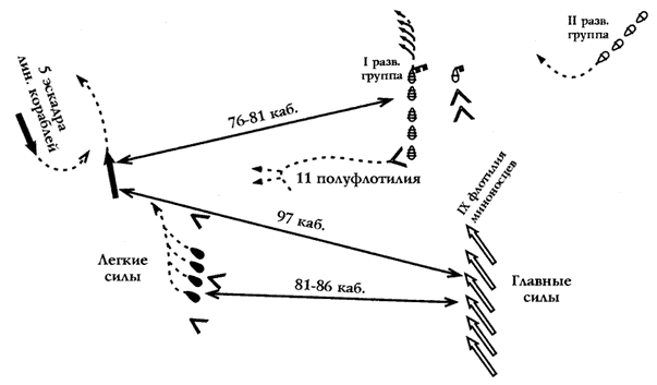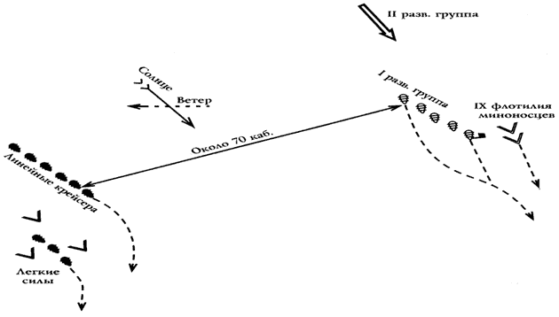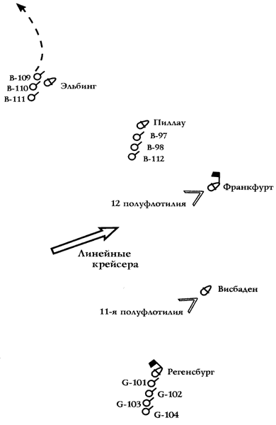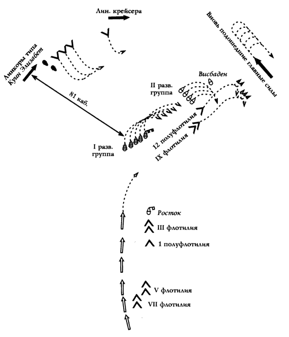 Схема 5. Схема вероятного расположения германского и английского флотов в 13 часов 16 декабря 1914 г. (стр. 117)