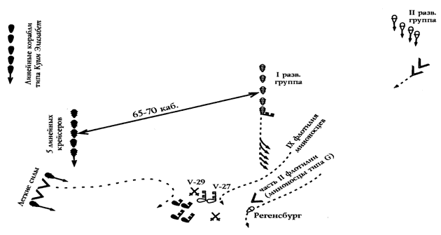 Схема 33. Нападение полуфлотилии на конвой (стр. 461)