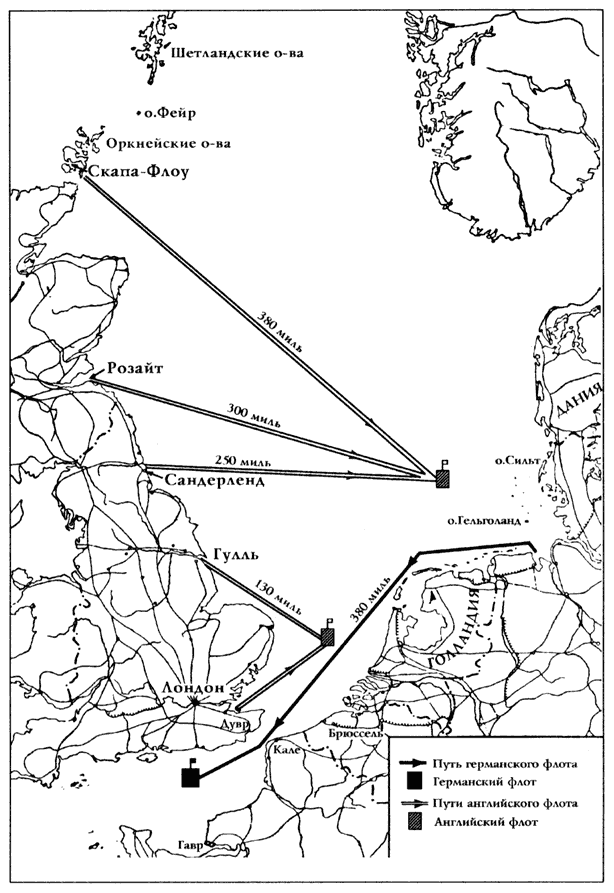 Схема 3. Вероятная схема сосредоточения английского флота в случае операции германского флота в Английском канале (стр. 105)