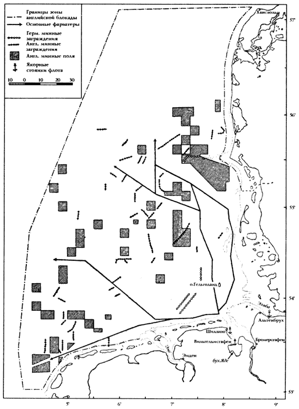 Схема 31. Минные заграждения в Германской бухте (стр. 425)