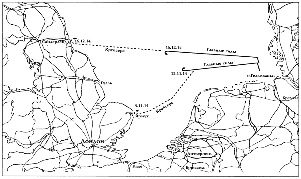 Схема 4. Операции Флота Открытого моря в ноябре и декабре 1914 г. (стр. 107)