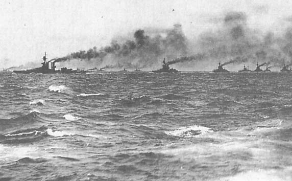 4-я эскадра дредноутов Гранд-Флита («Айрон Дюк», «Ройал Оук», «Сьюперб», «Канада») в Северном море
