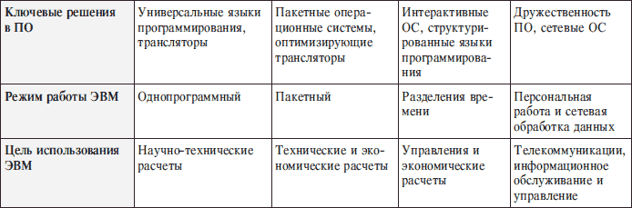 Наиболее значительным стало появление персональных ЭВМ, что позволило приблизить ЭВМ к своему конечному пользователю. Компьютеры стали широко использоваться неспециалистами, что потребовало разработки «дружественного» программного обеспечения. Возникают операционные системы, поддерживающие графический интерфейс, интеллектуальные пакеты прикладных программ, операционные оболочки. В связи с возросшим спросом на программное обеспечение совершенствуются технологии его разработки – появляются развитые системы программирования, инструментальные среды пользователя.
