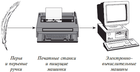 Появление электронно-вычислительных машин позволило обрабатывать, а впоследствии и передавать информацию со скоростью, в несколько миллионов раз превышающей скорость обработки (рис. 1.2) и передачи информации человеком (рис. 1.3).