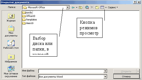на панели инструментов (рис. 5.2), затем в диалоговом окне выбрать мышью или с помощью стрелок клавиатуры сначала диск, на котором находится файл, папку, а затем из предложенного списка – имя файла – и нажать Открыть. После этого на экране появится текст открываемого файла.