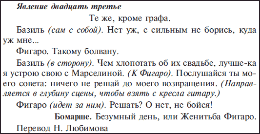 фраза «Явление двадцать третье» набрана размером на 1 пт меньше размера шрифта основного текста;