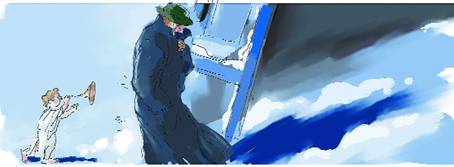 Он снова позвонил. Никого. Он заколотил в дверь.
