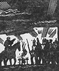 Кругом брели люди разноплеменной Европы, их ничто не сплачивало, и они превращались в зверей. Они собирались еще у костров и, чувствуя смертельный холод, тянулись к огню. Иногда пламя охватывало чью-нибудь голову, но сил потушить не было, и живой человек на глазах у других падал в костер. Его товарищи оставались у потухших костров, не имея сил встать.