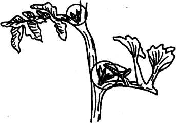 Рис. 11. Пасынки (боковые побеги, развивающиеся в пазухах листьев) нужно удалять пока они маленькие.