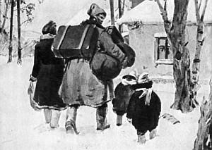 Пока Чук с Геком пили чай, мать торговалась с ямщиком: сколько он возьмет, чтобы довезти их в лес до места. Ямщик просил очень много – целых сто рублей. Да и то сказать: дорога и на самом деле была не ближняя. Наконец они договорились, и ямщик побежал домой за хлебом, за сеном и за теплыми тулупами.