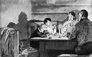 Ямщик потушил свечку и полез на печь. Разом все уснули. Но, конечно, как и всегда, ночью Геку захотелось пить, и он проснулся.