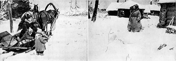 И, сбросив тулуп, ямщик зашагал через сугробы к крайней избушке.