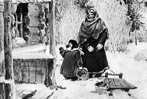 …А мать и Чук задержались. На обратном пути к дому санки перевернулись, ведра опрокинулись, и пришлось ехать к роднику снова. Потом выяснилось, что Чук на опушке позабыл теплую варежку, и с полпути пришлось возвращаться. Пока искали, пока то да се, наступили сумерки.