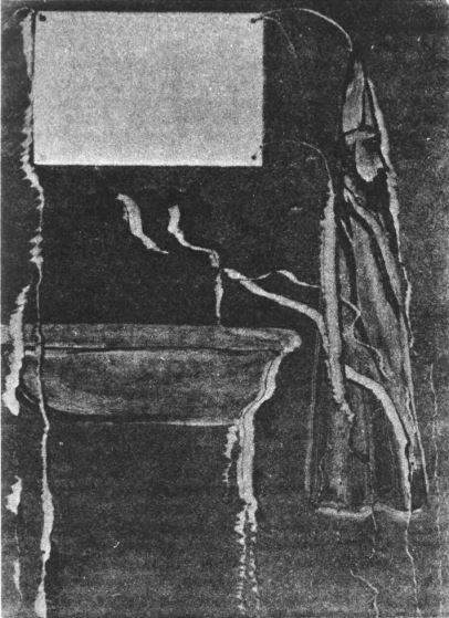 Рисунки из ЛСД-сеанса с преобладанием эстетических переживаний. Иллюзорная трансформация угла терапевтической комнаты. Воздух кажется полным странных вибраций и магических течений; складки полотенца, висящего на стене, воспринимаются в виде эльфа.