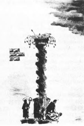 Картина символического видения, показывающая тесную связь между сексом и смертью в бессознательном Ренаты. Она изображает знаменитую колонну в Праге, воздвигнутую в качестве магической защиты против эпидемии чумы. Здесь она обвита струящимися сперматозоидами. Пациентка интерпретирует чуму, так же как и проказу, рак и венерические болезни, как наказание за сексуальные действия.